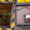 Conexión del sistema eléctrico al electrodo mediante una varilla y cable de cobre.
